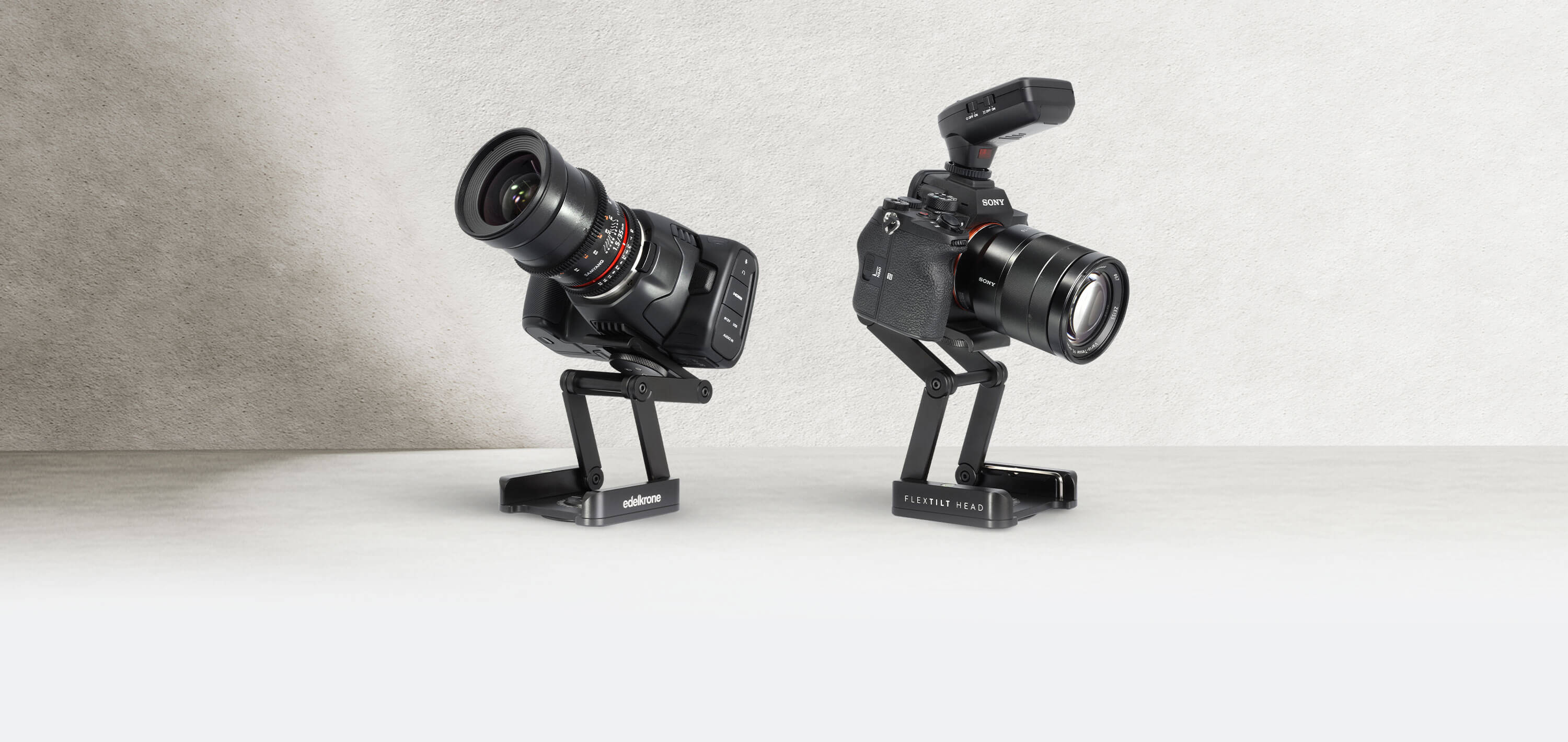 Attach any mirrorless, DSLR, or compact cinema camera setup up to 5.5 lb (2.5 kg) with peace of mind. FlexTILT is also the perfect add-on for edelkrone sliders, dollies, jibs, motorized heads, and camera stands.