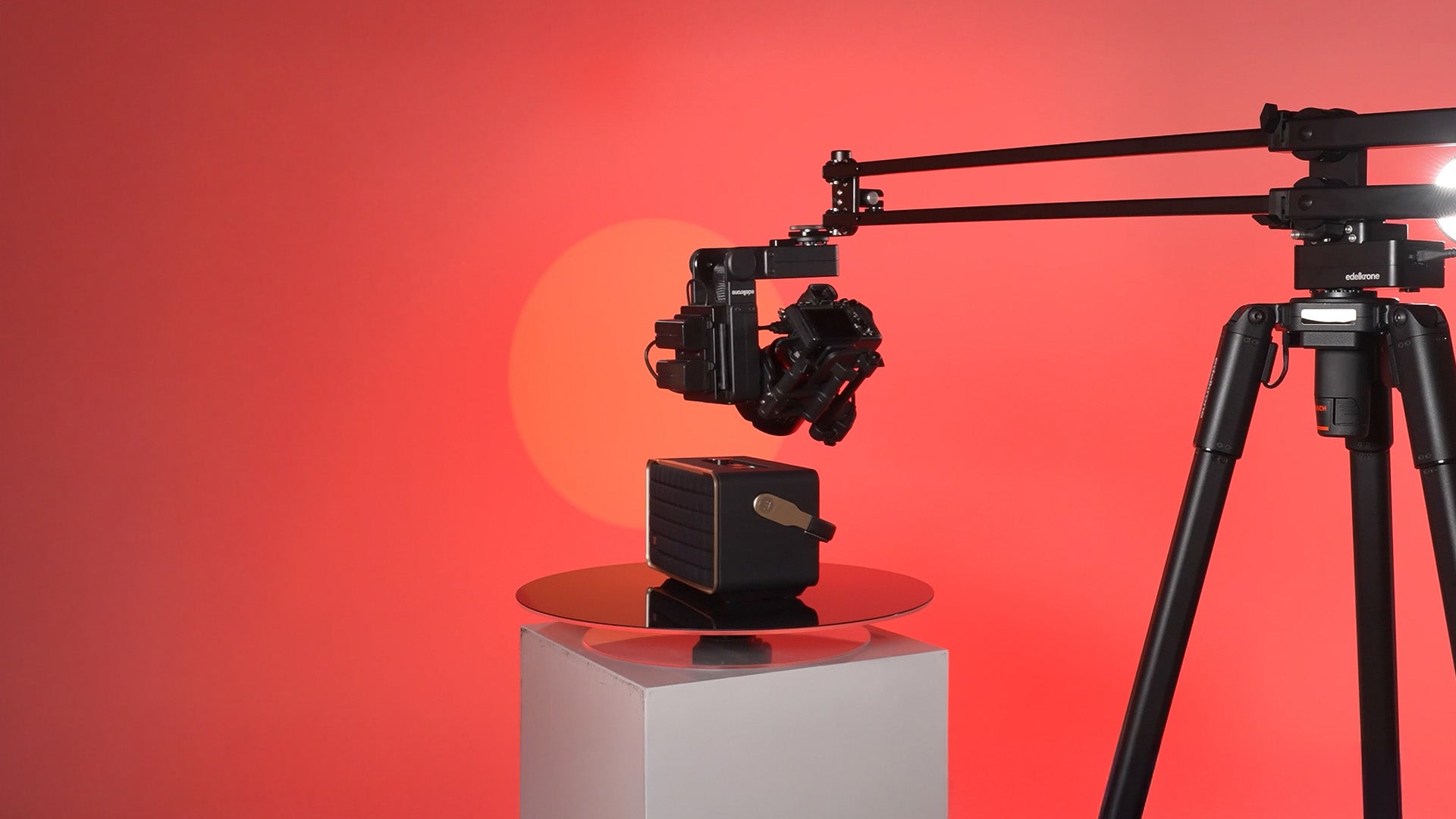 Tripod X, with its motorized height adjustment and self-leveling, makes working with JibPLUS a breeze. Plus, edelkrone Tripod Wheels allows you to effortlessly position the entire setup anywhere in the studio and set it up at any height with ease.